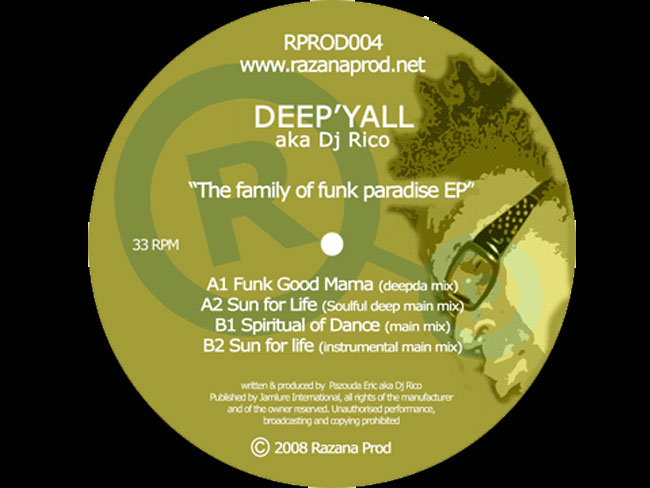 PURCHASE HERE „DEEP Y'ALL - The family of funk paradise ep | Written & Produced by Pazouda Eric aka DEEP Y'ALL / DJ RICO for Razana Prod
